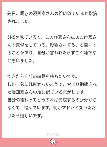 わたくしと全く同じお悩みをお持ちで…! 最近ようやくこの悩みの解決法が漠然とわかってきたところなんですが、このマシュマロをいただくことによってより明確化できた気がします。 まず、漫画がうまくまとまらない時って アイディアが足りてない場合と アイ…