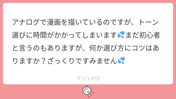 画材屋さんやネットで手に入るトーンのカタログを見ながら吟味してました